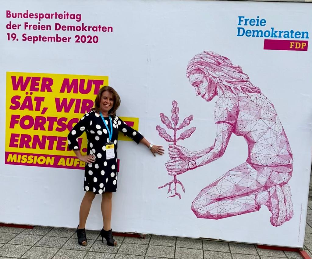 Als ich auf das Parteitagsmotto und die Frau mit der Pflanze in der Hand geschaut habe, habe ich mich die ganze Zeit gefragt "Woher kenne ich dieses Motiv?". Dann endlich viel es mir ein. Das 50-Pfennig-Stück hatte einen Frau, die eine Eiche pflanzt, auf der Rückseite der Silbermünze. Dieses Motiv stand für den Wiederaufbau der Bundesrepublik Deutschland. Das Parteitagslogo hat die Frau mit der Eiche mit Punkten und Strichen versehen, wie sie in modernen Technologien zu finden sind. In Anlehnung an das damalige Wirtschaftswunder kombiniert mit zukunftsweisenden Innovationen und Technologien will die FDP ihre Wirtschaftskompetenz in den Mittelpunkt rücken. Für mich bedeutet das Motiv aber auch: liberale Werte wie Fleiß und Zuverlässigkeit, Solidarität und Zusammenhalt sind ebenso wichtige Bausteine wie Bildung, Kompetenz, Mut und Innovationen. Das Zusammenspiel aus liberalen Werten gepaart mit Fähigkeiten macht einen liberalen Staat aus. Und dazu gehören auch starke Frauen!